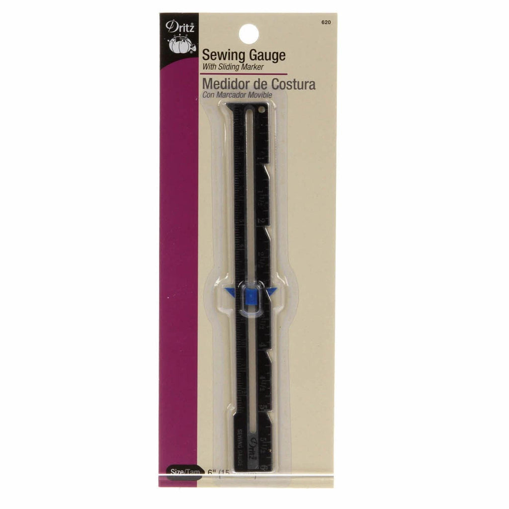 Use the Dritz seam gauge for repeat markings and even spacing. The sliding marker can be moved and will stay in place for repeated marking. Use to measure and mark seam allowances and hems on pattern alterations and designs. This gauge can also be used to mark buttonhole spacing and length; as well as, to evenly space tucks and pleats. Made of: Metal and Plastic Use: Sewing Gauge Size: 6in long Included: One Tool